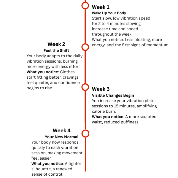 Each vibration sends gentle impulses through your body, triggering rapid muscle contractions — up to 30× faster than normal exercise. Resulting in: